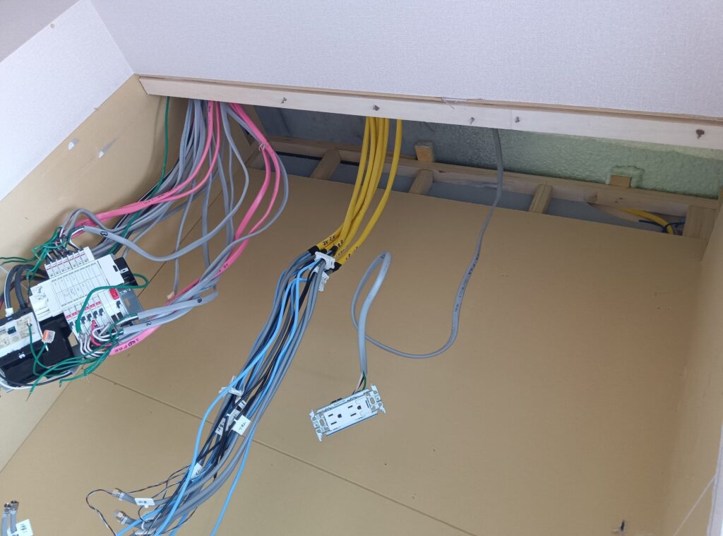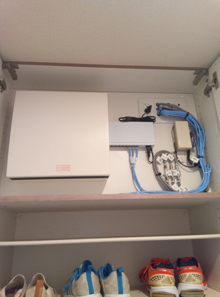 下駄箱の中に分電盤が入っているので電気屋にも来てもらいました。
